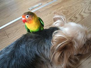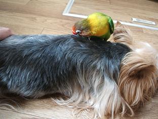 クレアの毛っ毛、短くなったのでピーちゃんの爪が肌に当たって