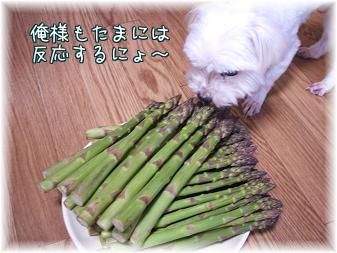 一生懸命アスパラガスを嗅いでみたり引っ張ってみたり・・・
