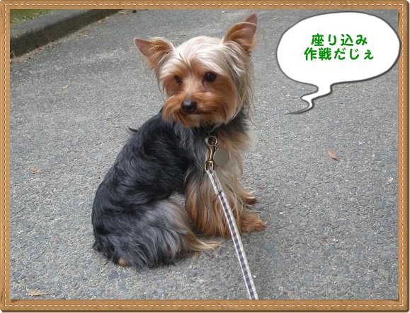 首輪&リードを着け 私がリードを持つと 座り込み作戦を実行し