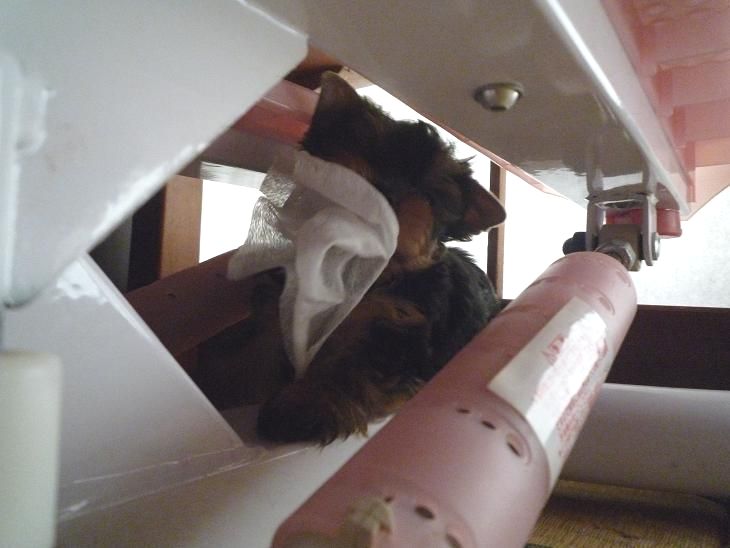 そんな時は婆ちゃんがセッセと頑張ってるマシーンの下に避難だぞぉ