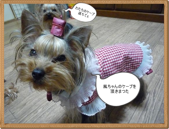 あくびが着れるサイズのケープがないので風のを拝借し