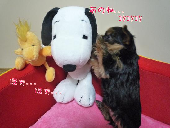 スヌーピーと内緒話中の あくびちゃん
