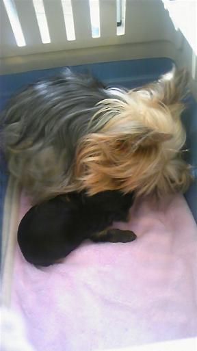 月のカット中、ほたるママに子守をお願いしました